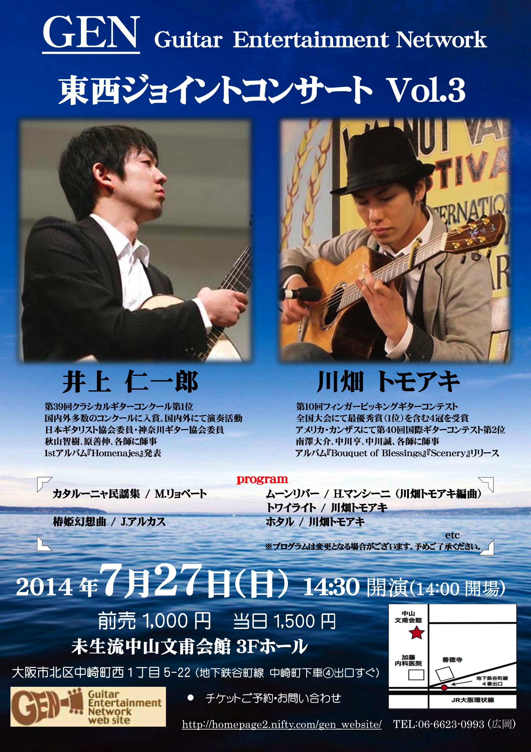 7月27日は大阪にて開催の『GEN東西ジョイントコンサートVol.3』に出演します。 アコースティックギタリスト川畑トモアキさんとのジョイントで、各45分ほどのソロ演奏があります。 大阪デビューになりますので皆様応援よろ […]