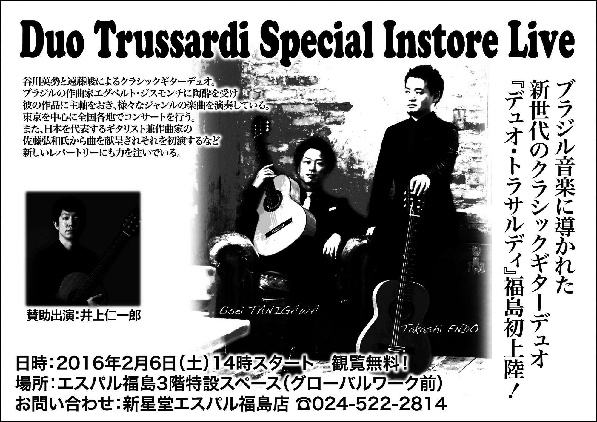デュオ・トラサルディのインストアライブに賛助出演します。