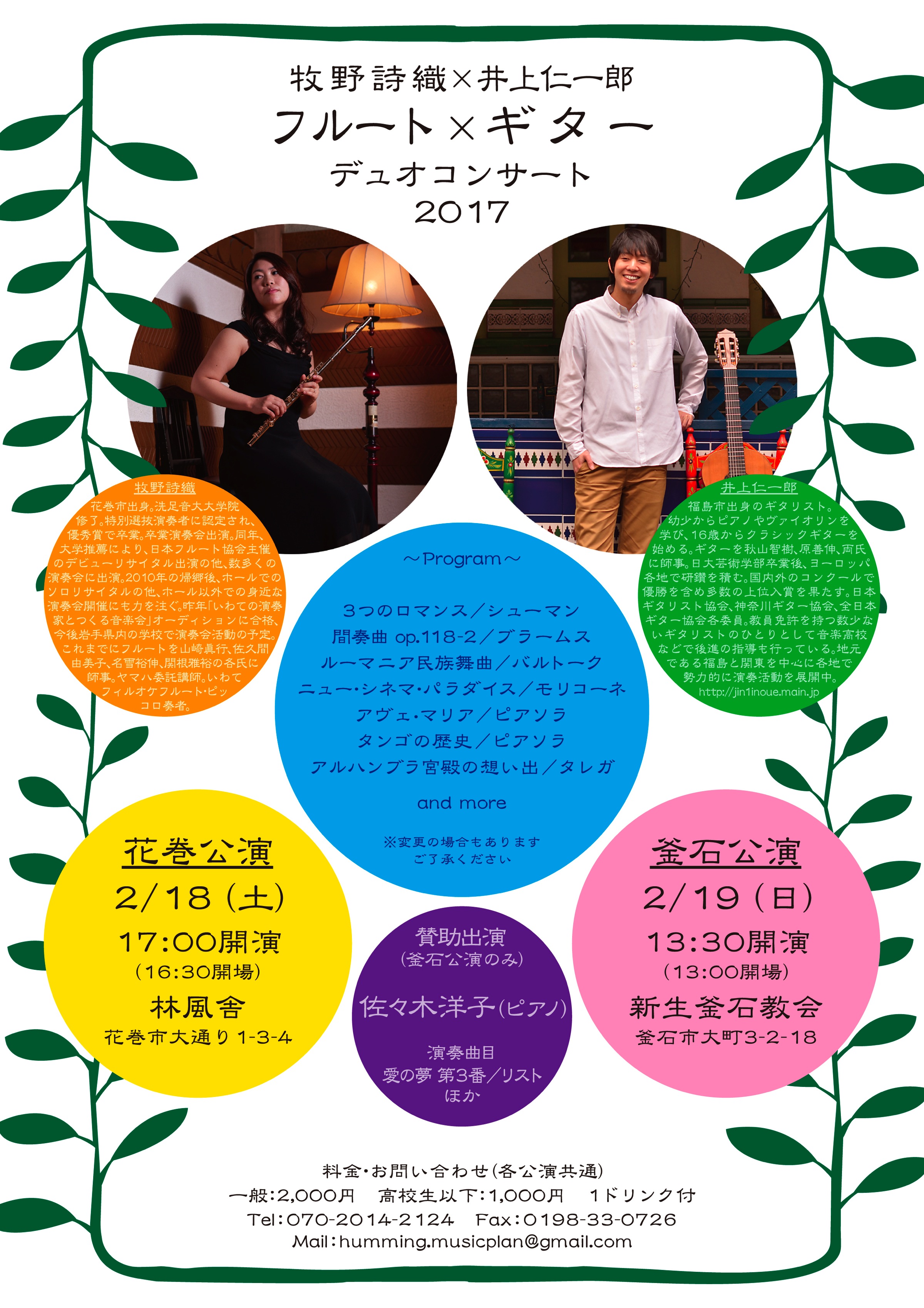 牧野詩織×井上仁一郎フルート×ギターデュオコンサート釜石公演
